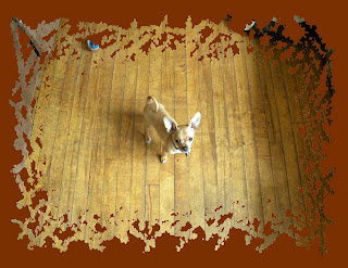 Eli's on the left. The middle one is now "Clifford" and lives with our friend. The one on the right found his home with my dad. His name is "Mister Wrinkles." It was a little heartbreaking to separate them. Chihuahuas are like potato chips ~ you can not have just one! However, Eli is a working dog and too much playtime with other pups would be detrimental to his training. We will get together with the other boys occasionally, I am sure of it. Of course, there will be opportunities to play with Aunt Delmi, too, over at mom's house.